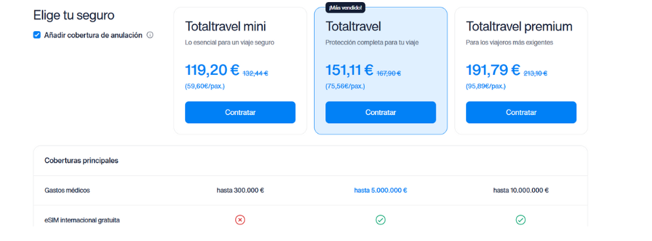 También tienen la opción de «anulación de viaje» a parte, podéis incluirla cuando estéis contratando vuestro seguro.